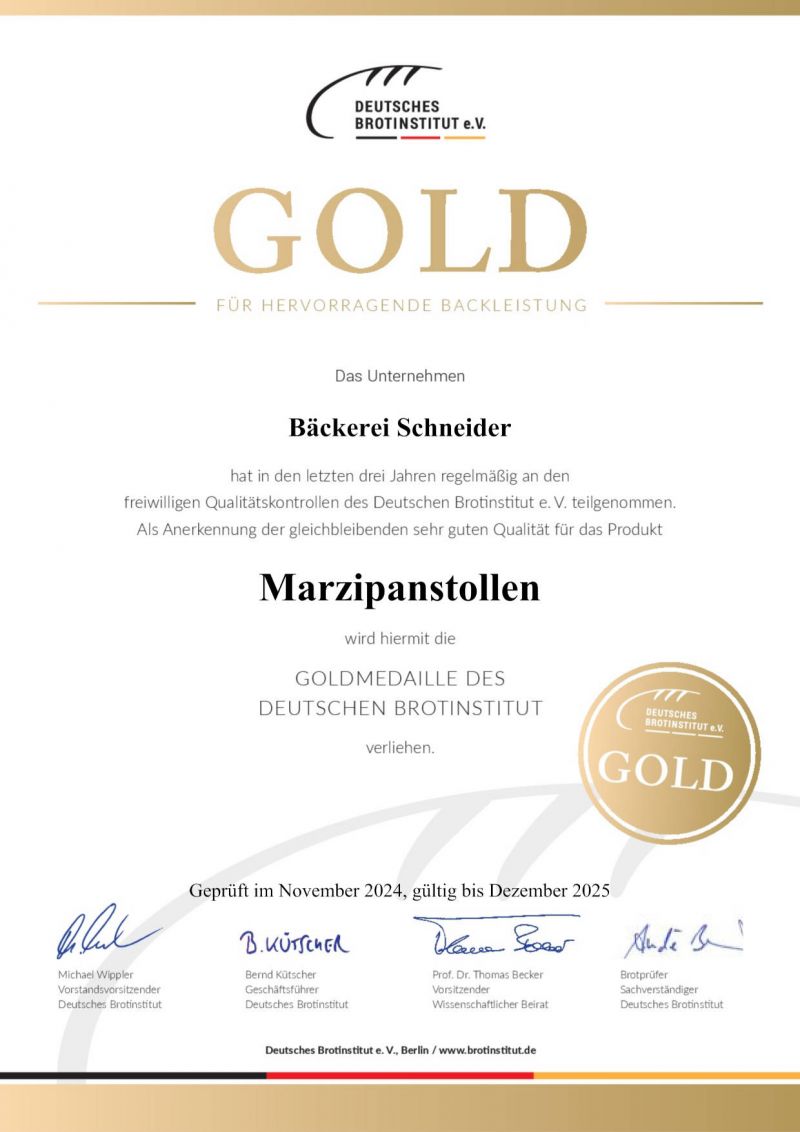 Der Marzipanstollen ist eine besonders feine Variation ist des Rosinenstollens. In den Stollenteig wird edles Marzipan eingewirkt, sodass es im Teig leicht verteilt wird ohne völlig vermischt zu sein. Durch die fein mit Marzipanschichten durchzogene Krume mit den in Rum eingelegten Rosinen entsteht ein besonderes Geschmackserlebnis.