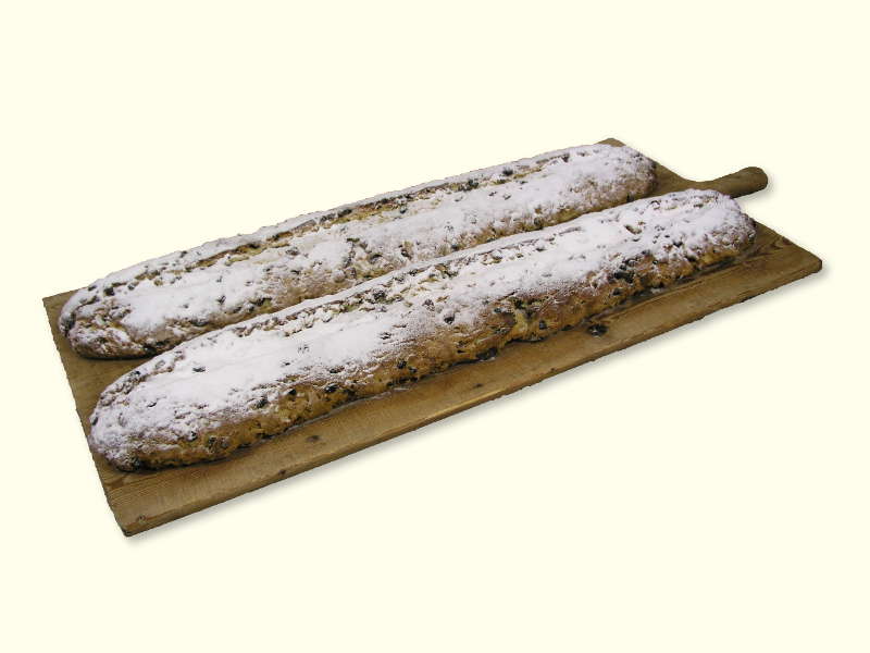 Der klassische und beliebteste Stollen ist der Rosinenstollen. Durch die gute Butter und die in Rum eingelegten Rosinen (Sultaninen) ist er besonders schmackhaft und saftig. Wie alle unsere Stollen sind natürlich auch unsere Rosinenstollen nur mit besten Zutaten ohne Konservierungsstoffe und künstliche Aromen gebacken.